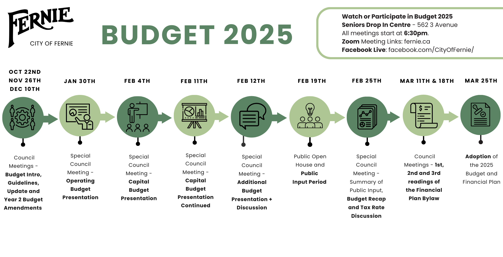 The 2025 Budget Process started in fall 2024 with Council endorsement of a set of guidelines, and has included a series of Special Budget Meetings in late January and through February to present the draft operating and capital budgets to Council for their consideration.