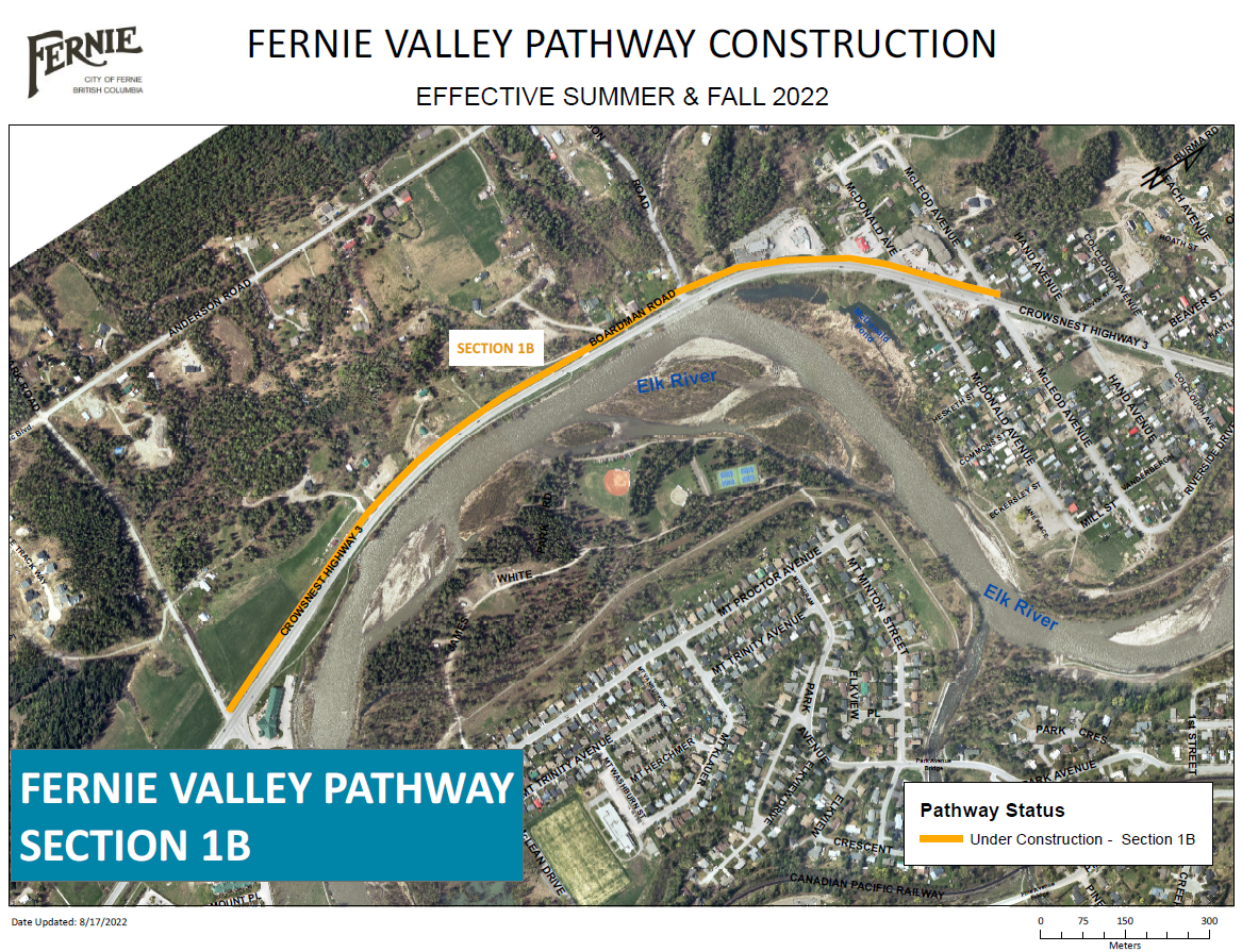 Clearing and grubbing of the Fernie Valley Pathway trail alignment between Boardman Road and Mount Fernie Park Road is also getting underway, with gravel placement expected to start mid September. .